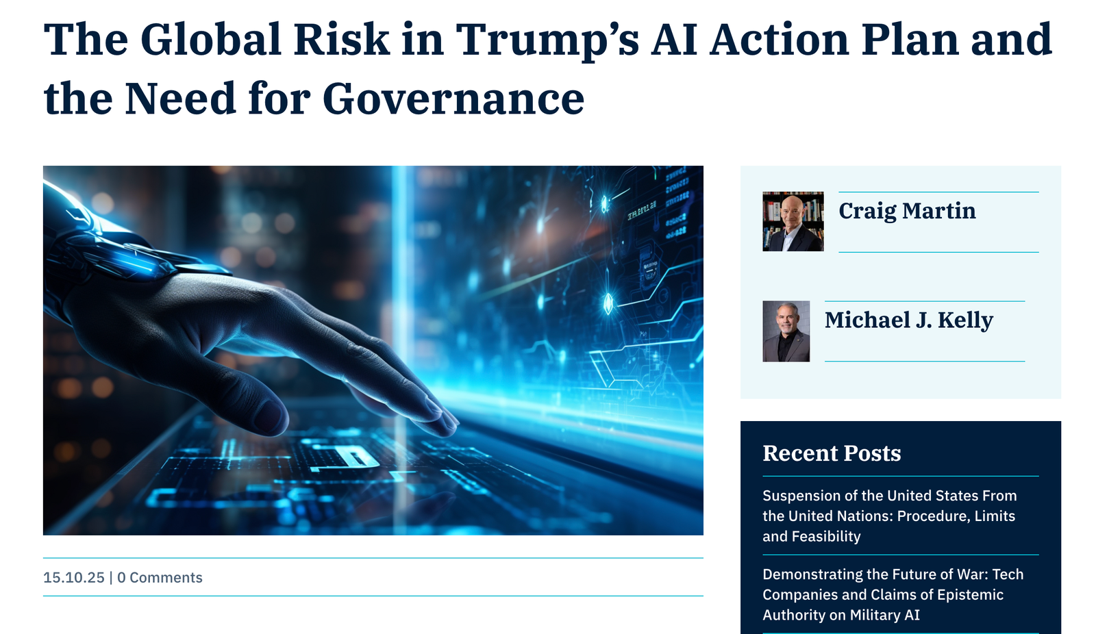 In this blog post Mike Kelly and I examine how Trump’s AI Action Plan, issued in July of 2025, contributes to the risks associated with artificial general intelligence, and explain why global governance of the research and development of AI that is at the frontier of artificial general intelligence is so important. Some are skeptical of how close we are to AGI, or how much of a risk it really posses, but as we explain, there is a non-trivial possibility that AGI could pose an existential threat to humanity, and thus the precautionary principle requires that take steps now to address that risk.